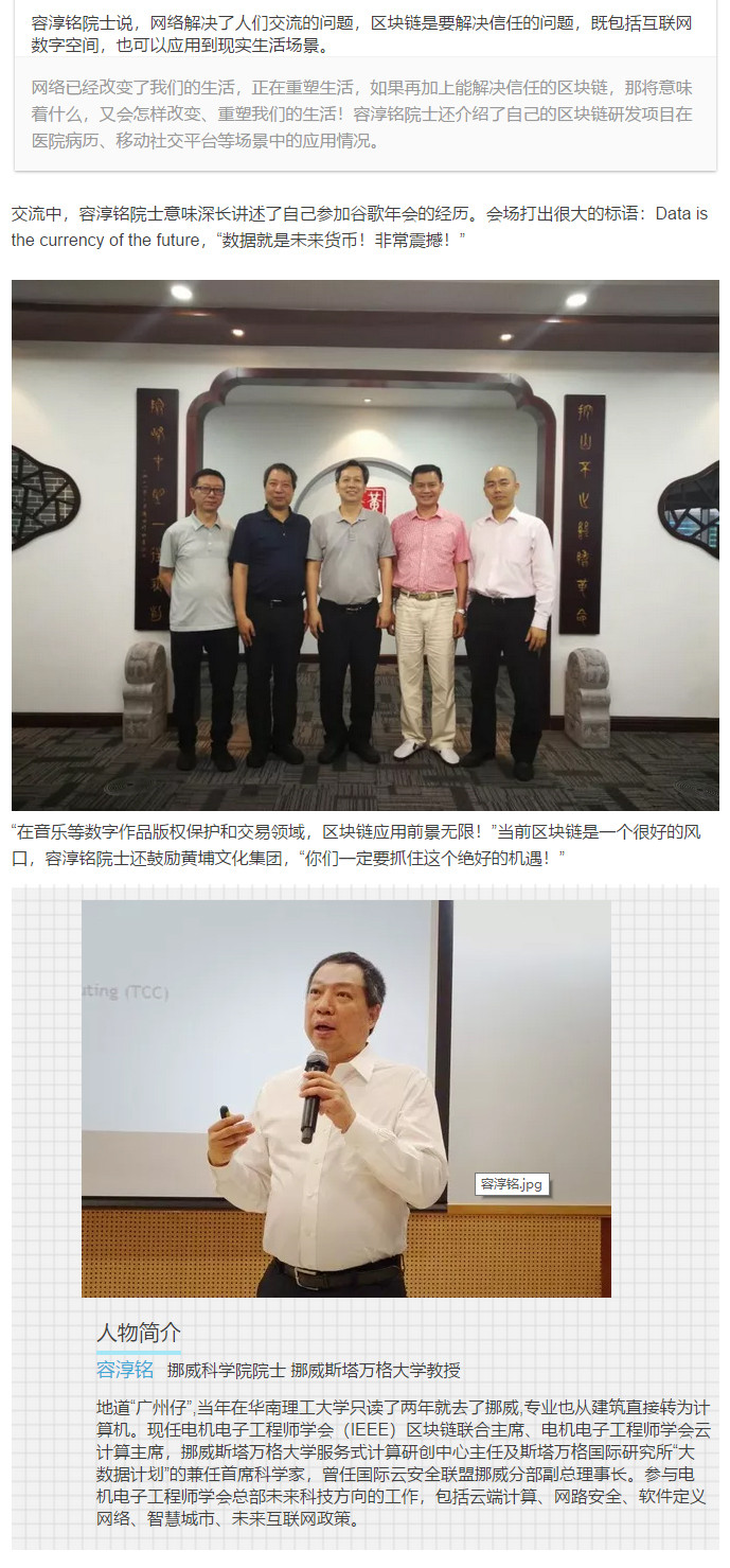 容淳銘院士來(lái)訪:文化上“鏈”大有可為!黃埔文化春天,迎來(lái)區(qū)塊鏈云!